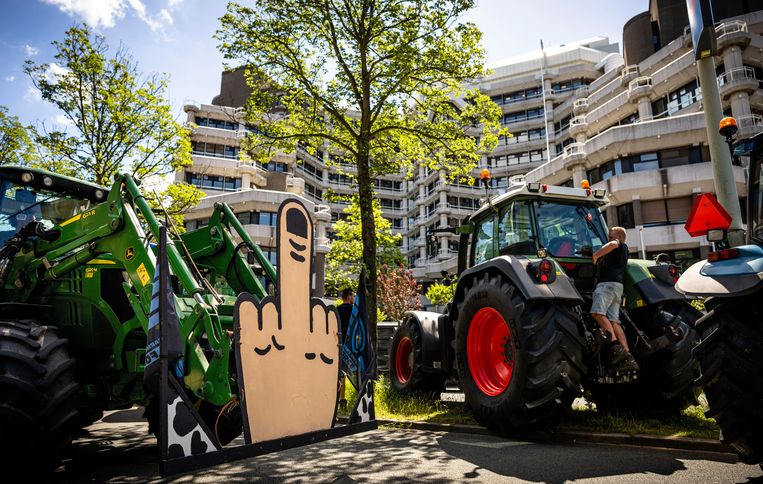 Boeren protesteren met tractoren bij het Kamergebouw.Beeld Freek van den Bergh/ de Volkskrant