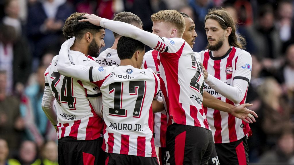 Opstelling PSV: Kovar, Sildillia, Schouten, Obispo, Mauro Jr.; Wanner, Veerman, Saibari, Man, Til, Perisic.